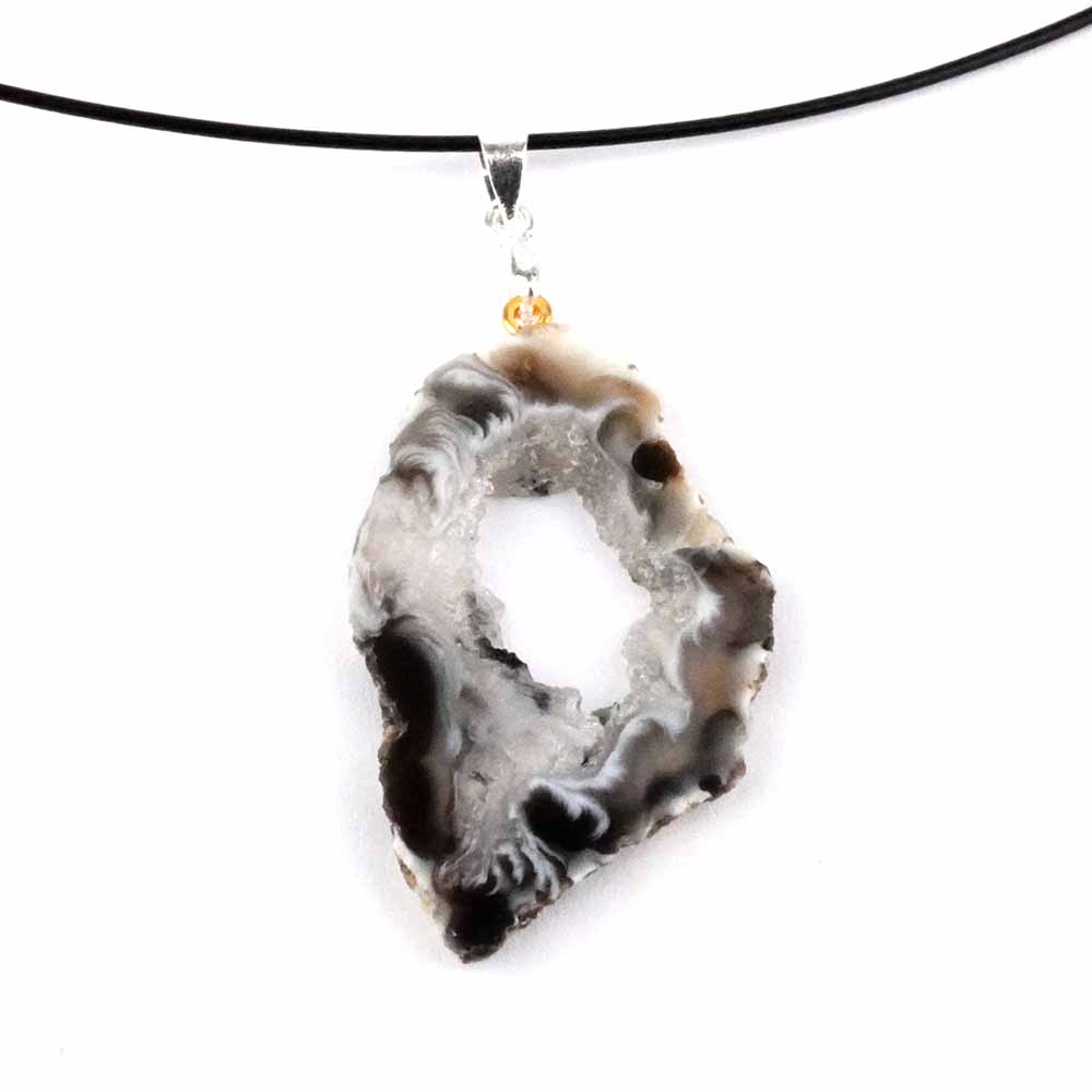 Wunderschöner Achatgeoden-Scheiben Anhänger mit vielen kleinen Kristallen.