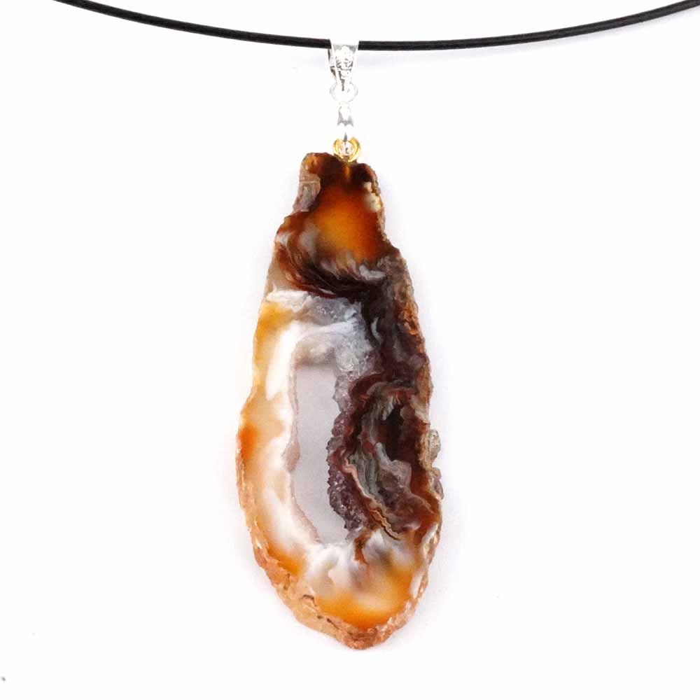Wunderschöner Achatgeoden-Scheiben Anhänger mit vielen kleinen Kristallen.