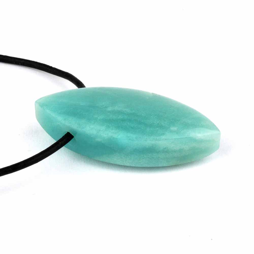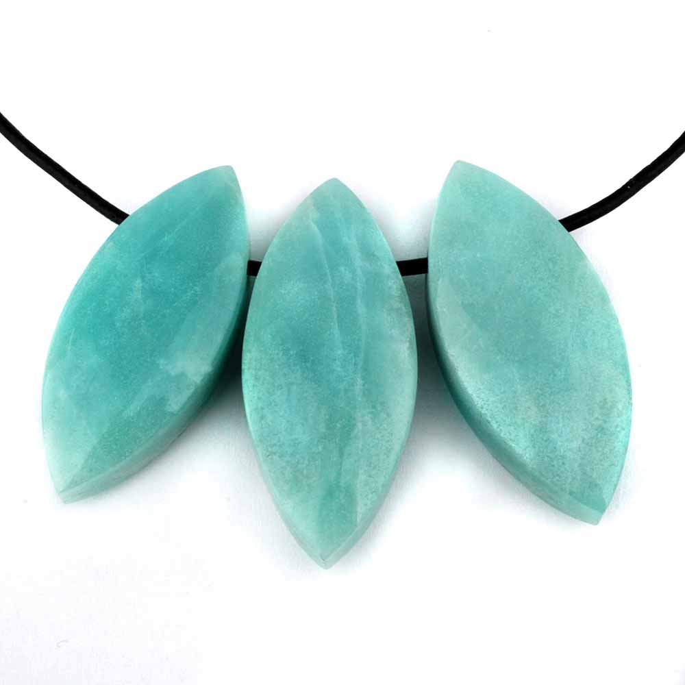 Bester Amazonit wurde hier zu erstklassigen und wunderschönen Navette-Anhängern verarbeitet.