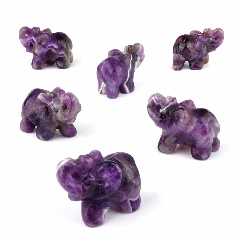 Schöne Elefanten aus Amethyst von Hand graviert. Mit dem Rüssel nach oben, wird er auch als Glückselefant bezeichnet.