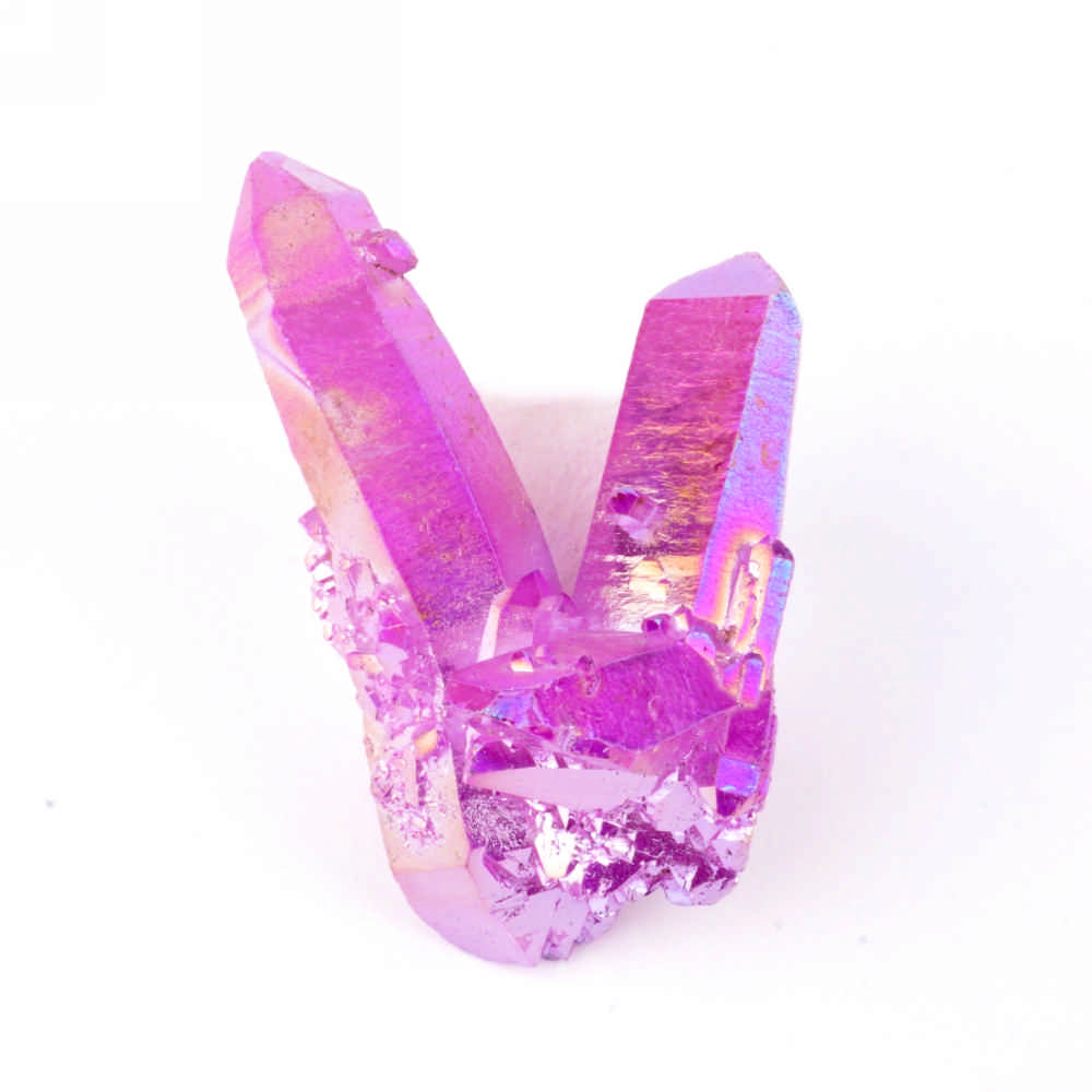 Diese einzigartigen Bergkristalle werden mit Edelmetallen (wie z.B. Gold) bedampft.