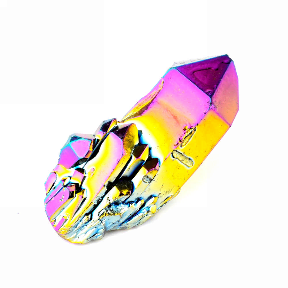 Diese einzigartigen Bergkristalle werden mit Edelmetallen (wie z.B. Gold) bedampft.