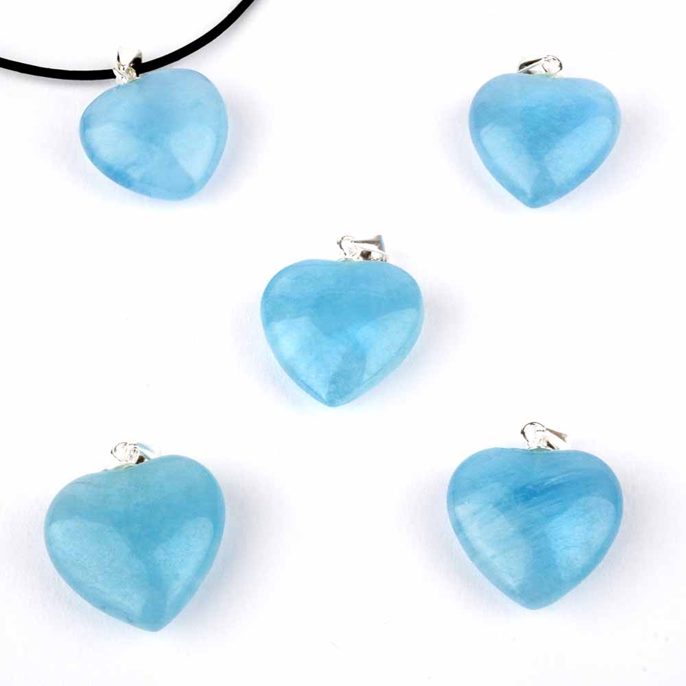 Aquamarin | Beryll Herz Anhänger mit 925 Sterling-Silber Öse beste Farbe und Qualität