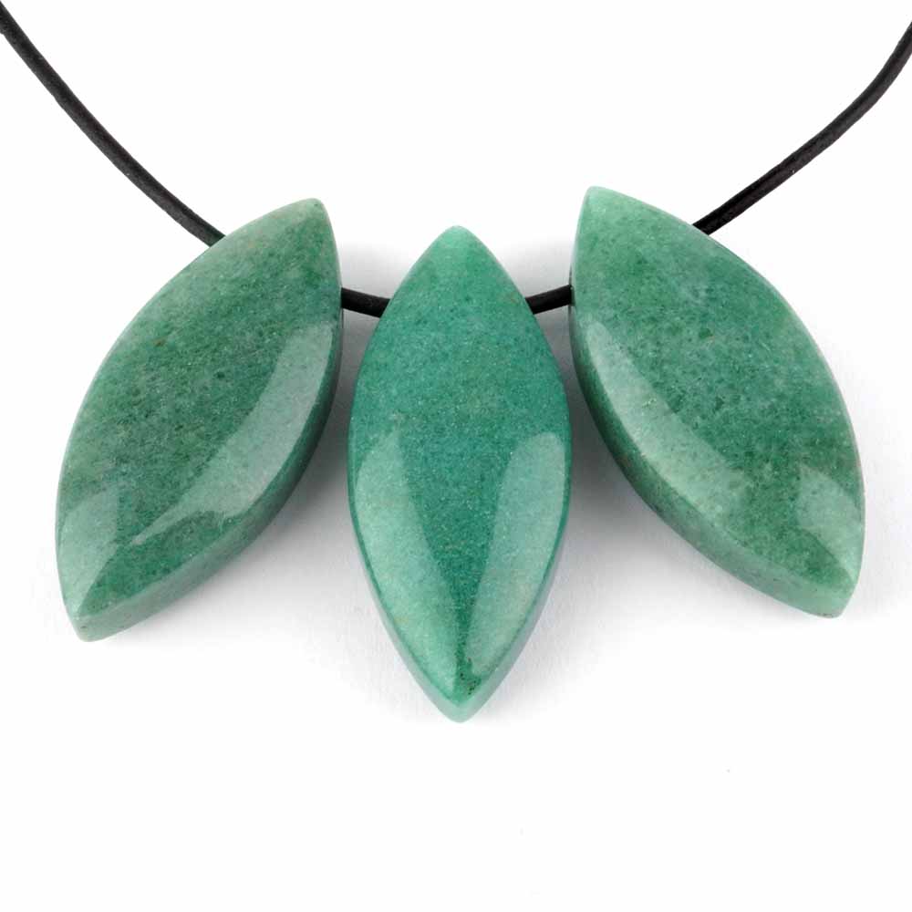 Bester, grüner Aventurin wurde hier zu erstklassigen und traumhaft schönen Navette-Anhängern verarbeitet.