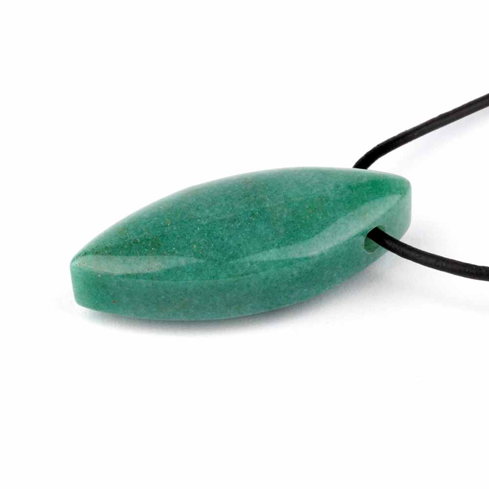 Aventurin grün Navette Anhänger seitlich gebohrt mit schwarzem Satinband