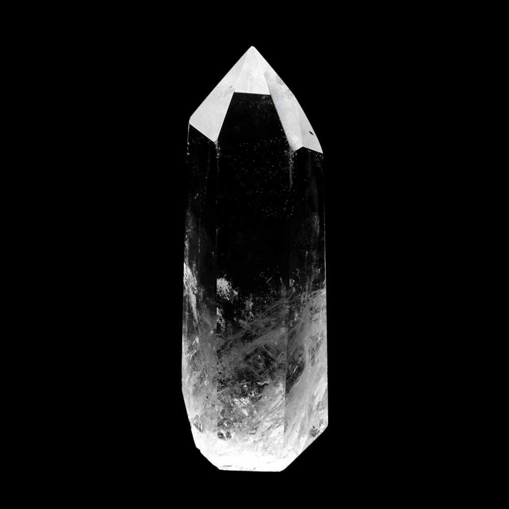 Farbloser Quarz wird Bergkristall genannt. Das Wort „Kristall“ kommt vom griechischen „krystallos“, was soviel wie „Eiskristall“ bedeutet, weil man dachte, Quarzkristalle seien Eisstücke, die so tief gefroren seien, dass sie nicht wieder schmelzen könnten. Der beste Bergkristall hat die Klarheit und den Glanz von Wasser.