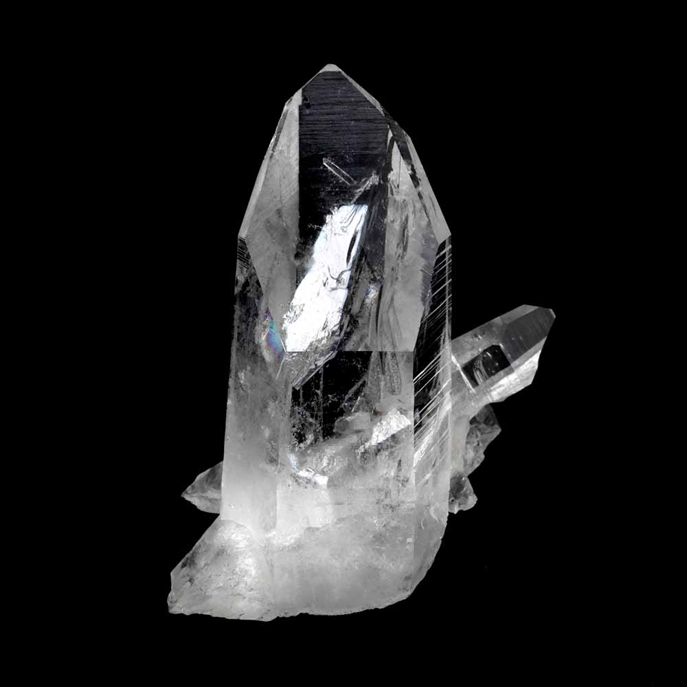 Farbloser Quarz wird Bergkristall genannt. Das Wort „Kristall“ kommt vom griechischen „krystallos“, was soviel wie „Eiskristall“ bedeutet, weil man dachte, Quarzkristalle seien Eisstücke, die so tief gefroren seien, dass sie nicht wieder schmelzen könnten. Der beste Bergkristall hat die Klarheit und den Glanz von Wasser.