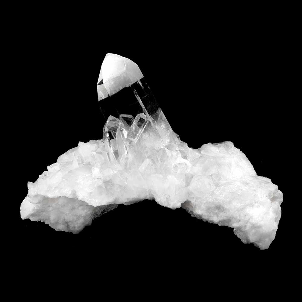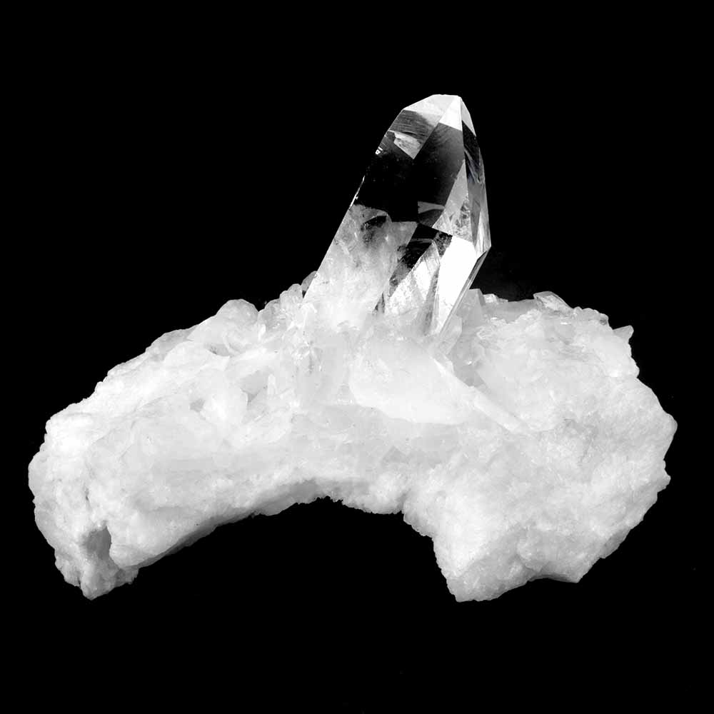 Farbloser Quarz wird Bergkristall genannt. Das Wort „Kristall“ kommt vom griechischen „krystallos“, was soviel wie „Eiskristall“ bedeutet, weil man dachte, Quarzkristalle seien Eisstücke, die so tief gefroren seien, dass sie nicht wieder schmelzen könnten. Der beste Bergkristall hat die Klarheit und den Glanz von Wasser.