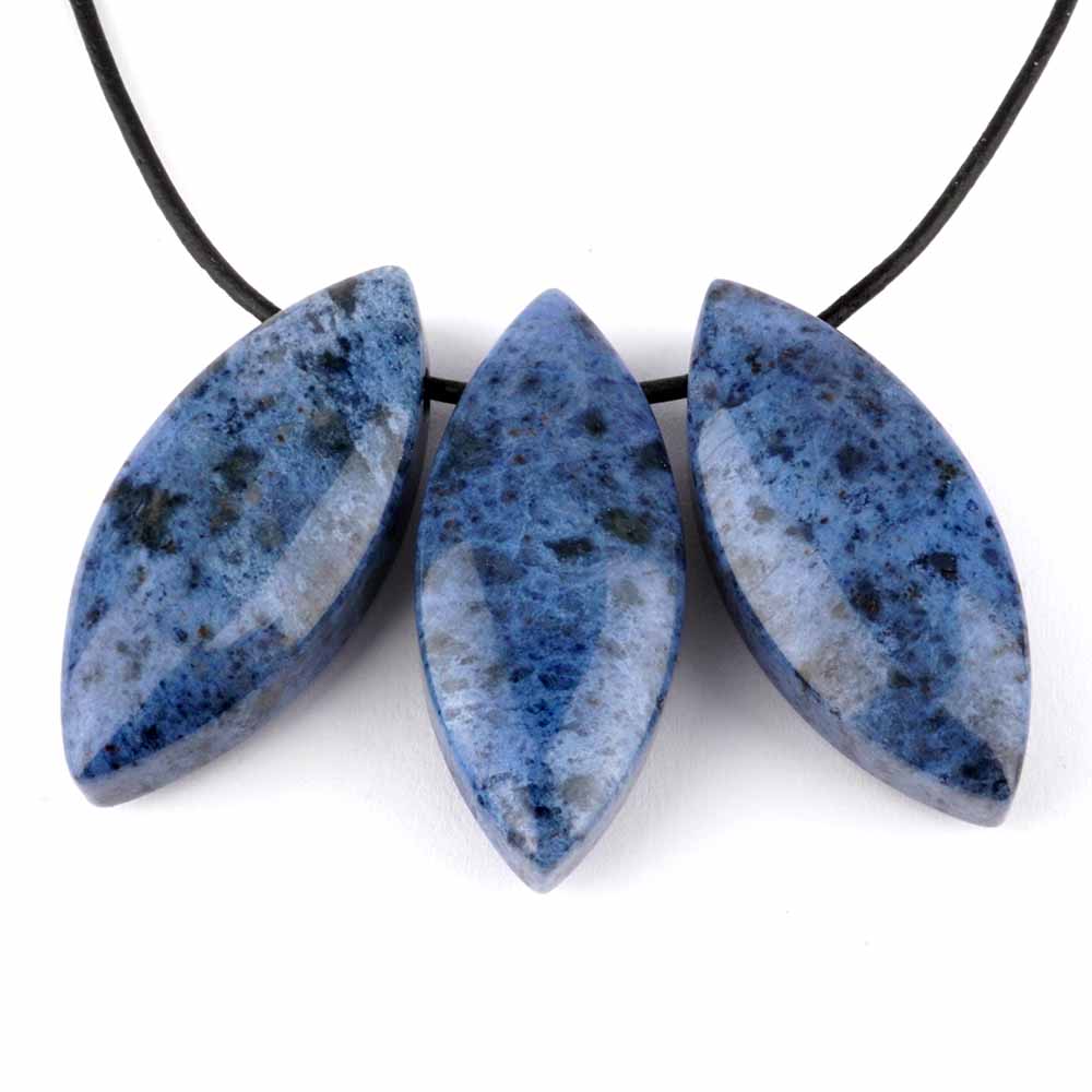 Bester Dumortierit wurde hier zu erstklassigen und wunderschönen Navette-Anhängern verarbeitet.