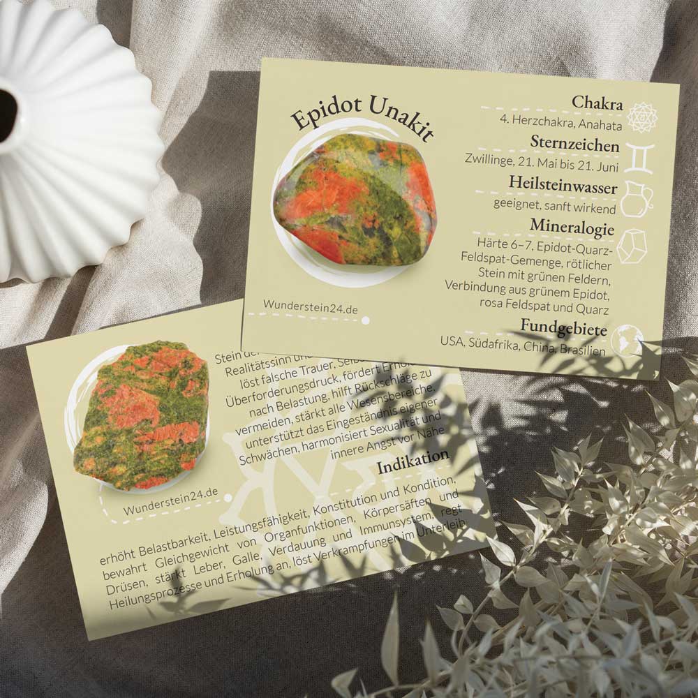Epidot | Unakit Mineralien Bestimmungskärtchen Sammelkarte