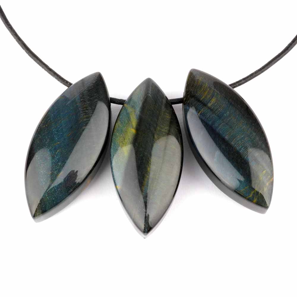 Bestes Falkenauge | Tigerauge blau wurde hier zu erstklassigen und wunderschönen Navette-Anhängern verarbeitet.