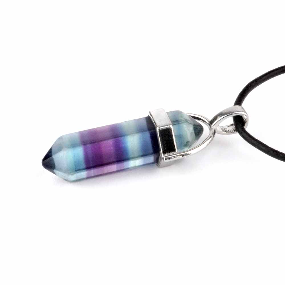 Fluorit bunt | Regenbogenfluorit Spitze | Doppelender Anhänger mit silberner Öse