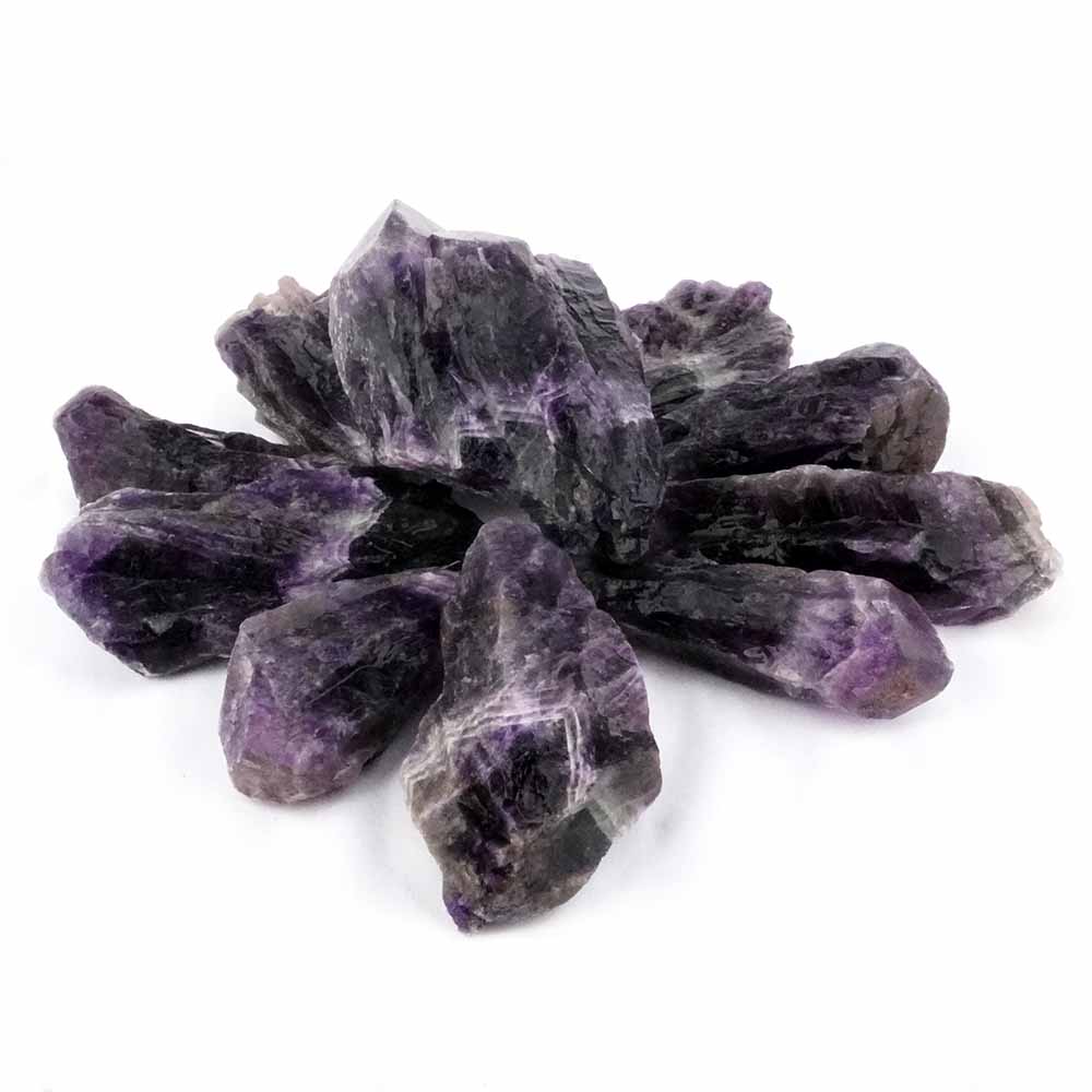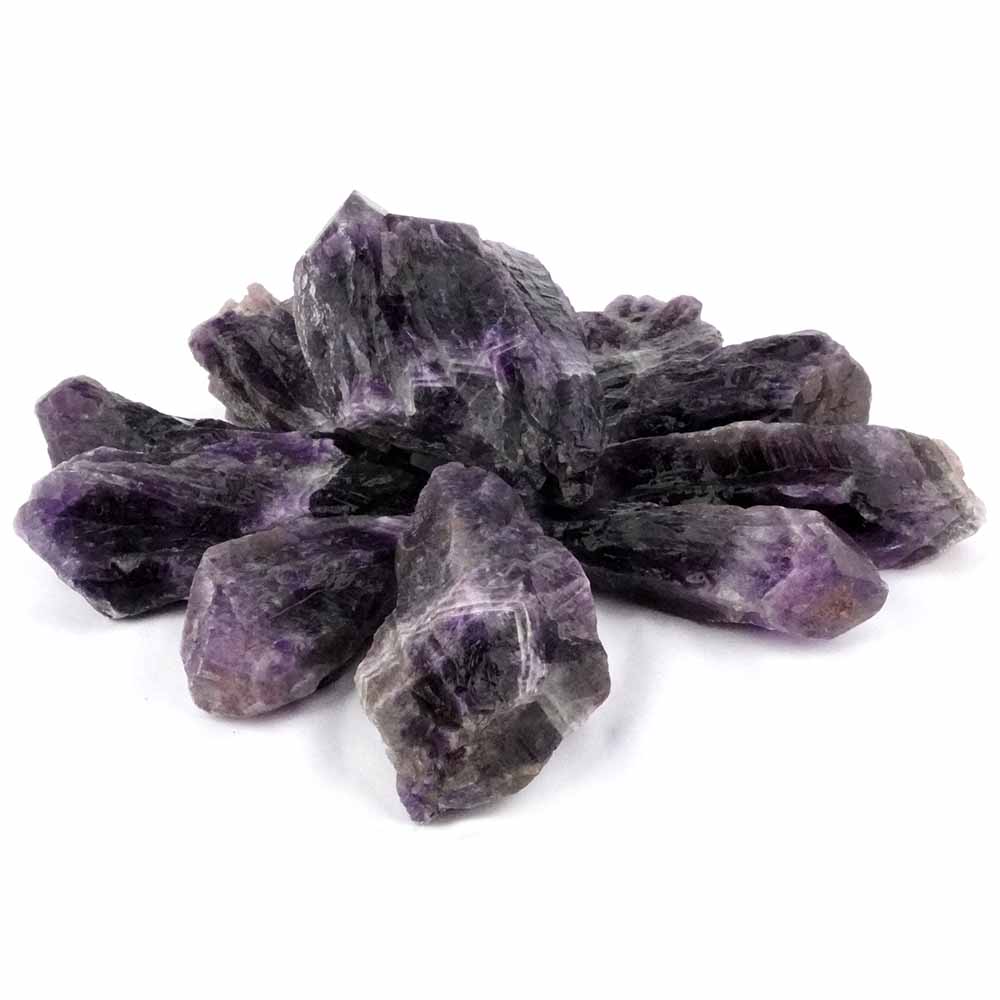 Diese Amethyst Rohsteine in dunklem Lila stammen aus Namibia.
