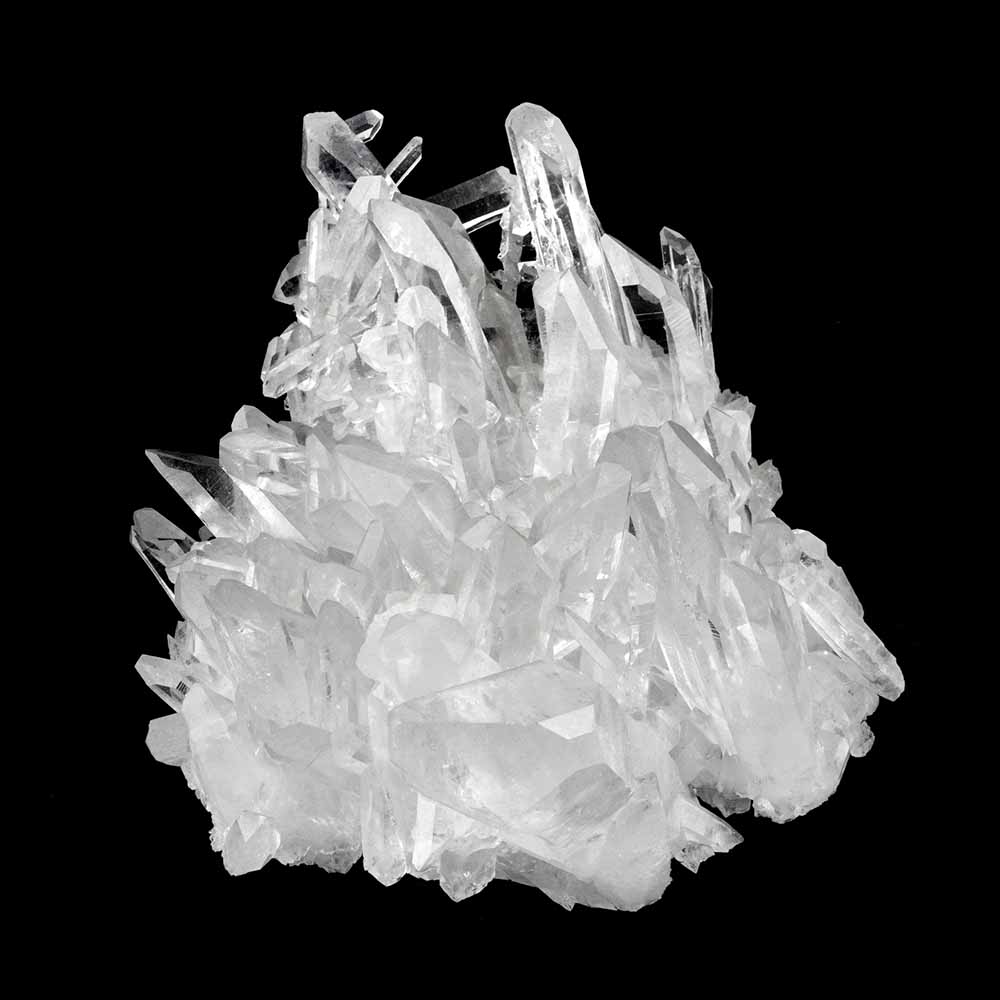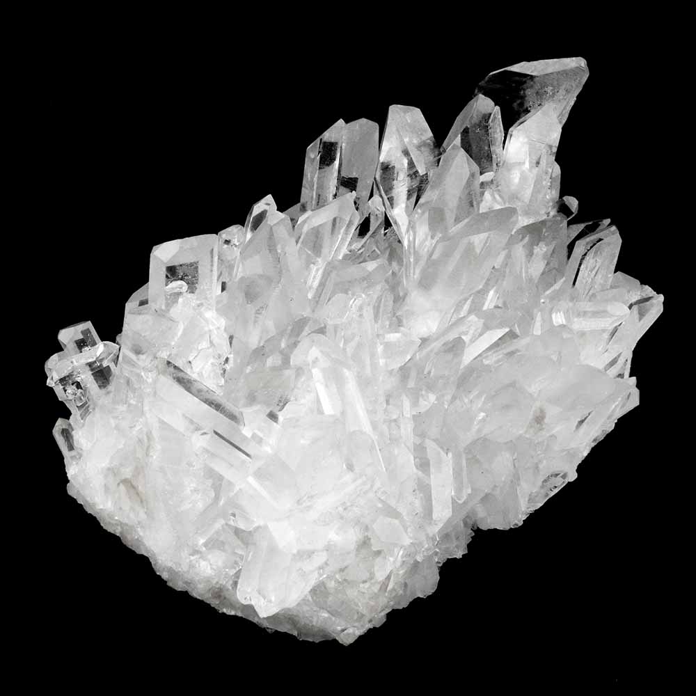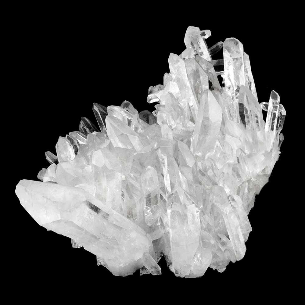 Farbloser Quarz wird Bergkristall genannt. Das Wort „Kristall“ kommt vom griechischen „krystallos“, was soviel wie „Eiskristall“ bedeutet, weil man dachte, Quarzkristalle seien Eisstücke, die so tief gefroren seien, dass sie nicht wieder schmelzen könnten. Der beste Bergkristall hat die Klarheit und den Glanz von Wasser.