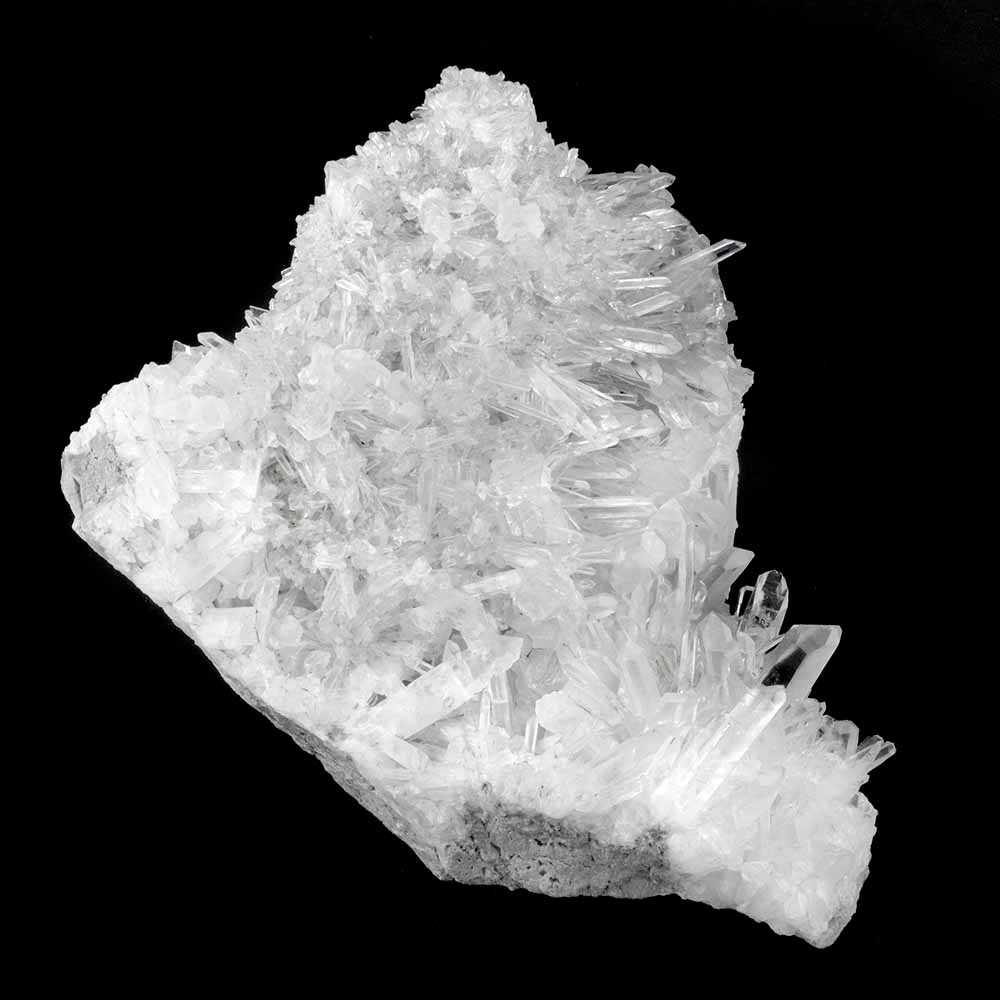 Farbloser Quarz wird Bergkristall genannt. Das Wort „Kristall“ kommt vom griechischen „krystallos“, was soviel wie „Eiskristall“ bedeutet, weil man dachte, Quarzkristalle seien Eisstücke, die so tief gefroren seien, dass sie nicht wieder schmelzen könnten. Der beste Bergkristall hat die Klarheit und den Glanz von Wasser.