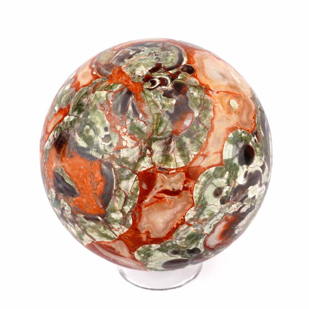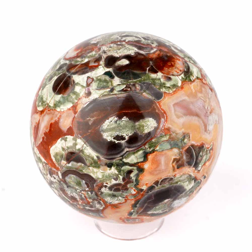 Große polychrome Jaspis Kugel mit Achat und Chalcedon Einschlüssen in einzigartiger Maserung in bester Qualität und Farbe.