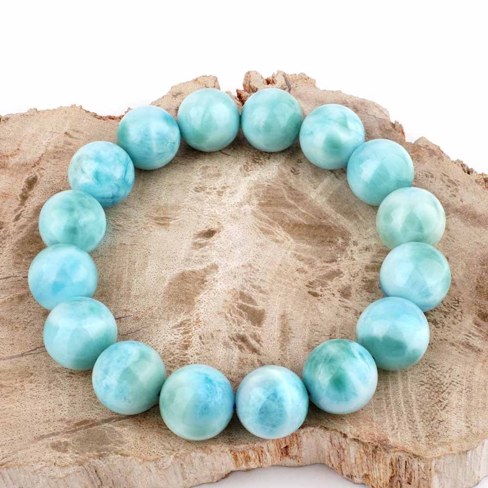 Larimar Ø 14 mm Kugel Edelstein Armband flexibel und dehnbar