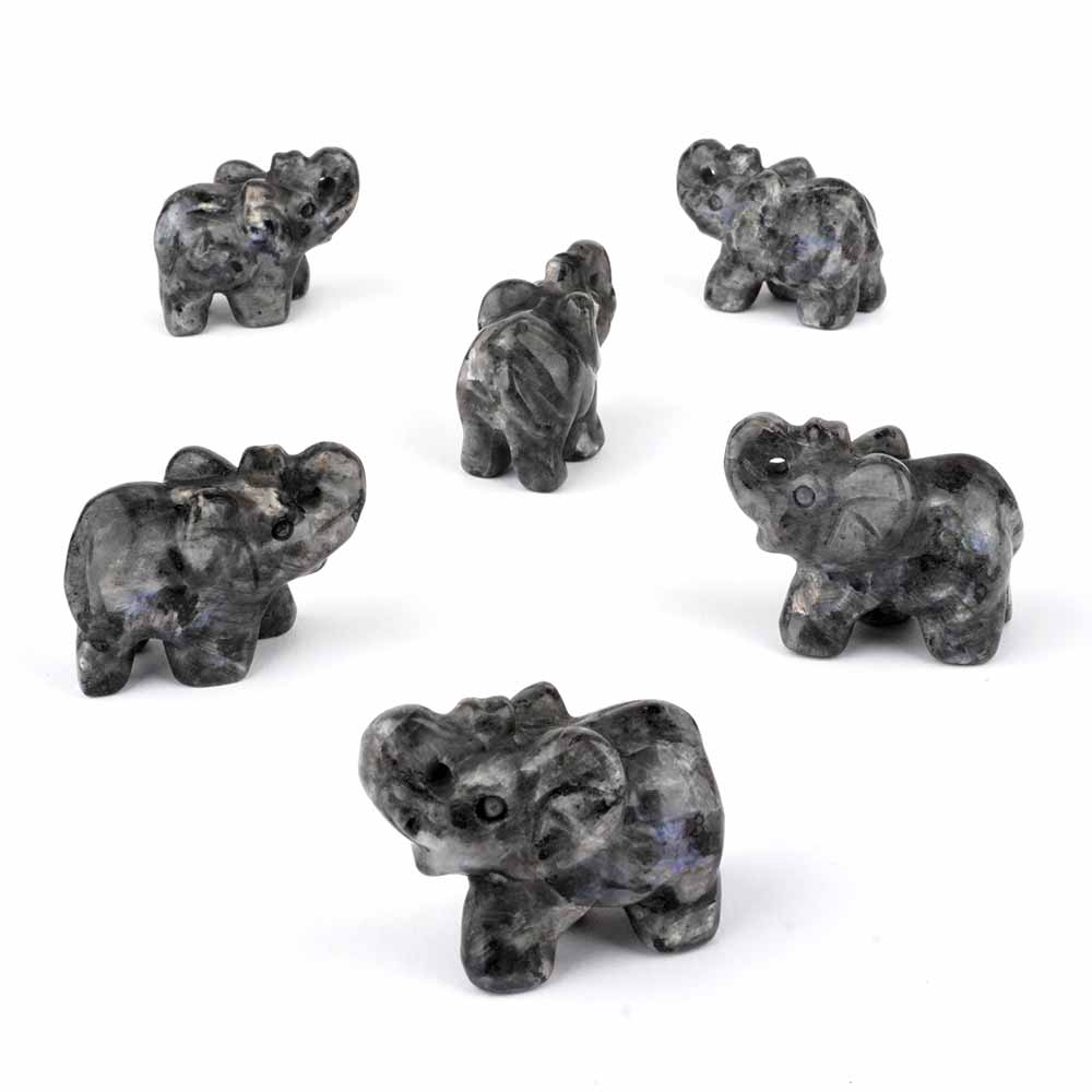 Schöne Elefanten aus Larvikit von Hand graviert. Mit dem Rüssel nach oben, wird er auch als Glückselefant bezeichnet.