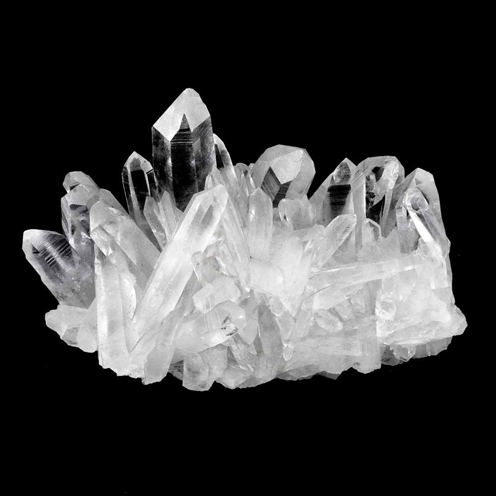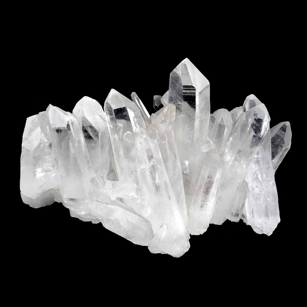 Farbloser Quarz wird Bergkristall genannt. Das Wort „Kristall“ kommt vom griechischen „krystallos“, was soviel wie „Eiskristall“ bedeutet, weil man dachte, Quarzkristalle seien Eisstücke, die so tief gefroren seien, dass sie nicht wieder schmelzen könnten. Der beste Bergkristall hat die Klarheit und den Glanz von Wasser.