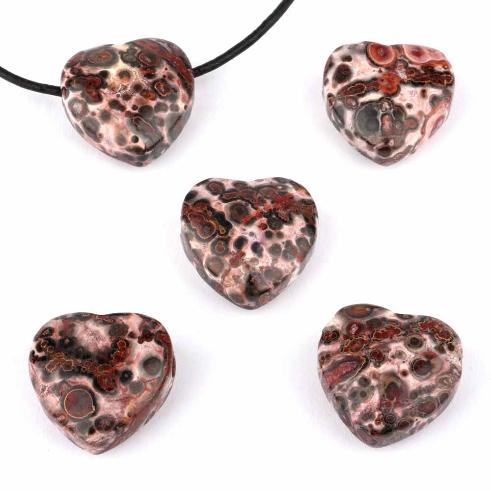 Bester Leoparden Jaspis wurde hier zu erstklassigen und wunderschönen Herz-Anhängern verarbeitet.