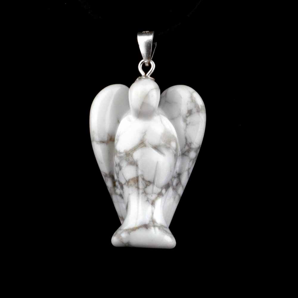 Magnesit weiß | Howlith Engel | Schutzengel Anhänger mit 925 Sterling-Silber Öse