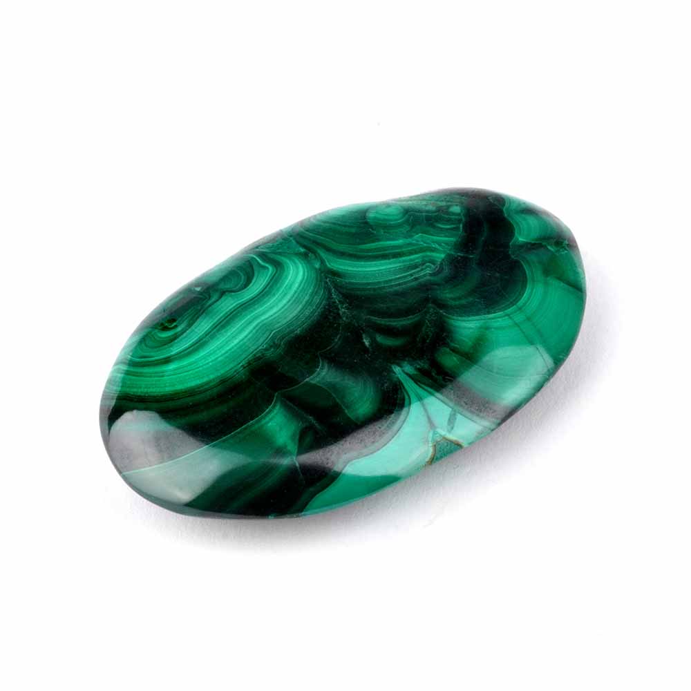 Malachit Handschmeichler mit einzigartiger Maserung und in sehr guter Qualität und Farbe.