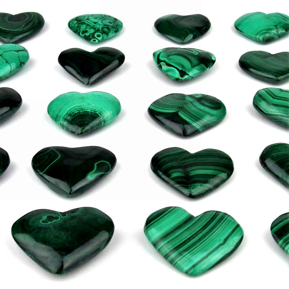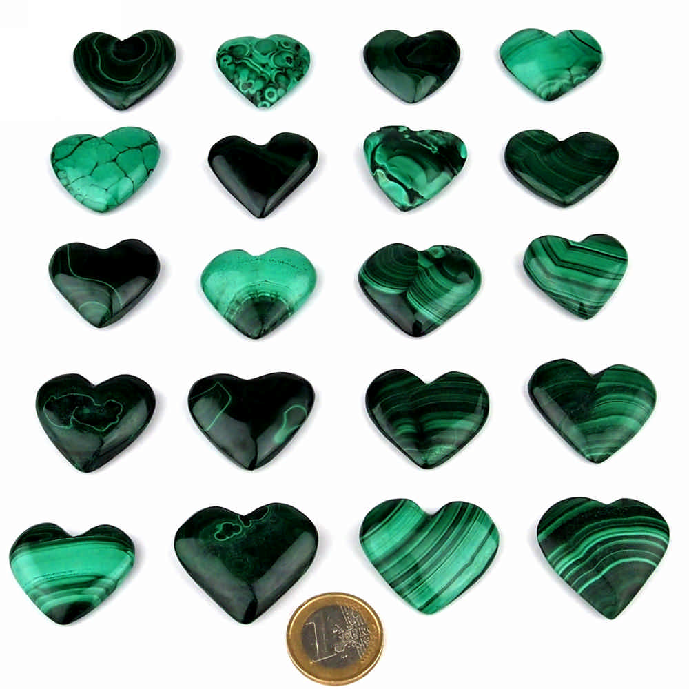 Sehr schöne, aufwendig von Hand geschliffene und polierte Herzen aus Malachit.
