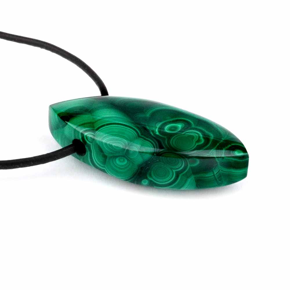 Bester Malachit wurde hier zu erstklassigen und wunderschönen Navette-Anhängern verarbeitet.