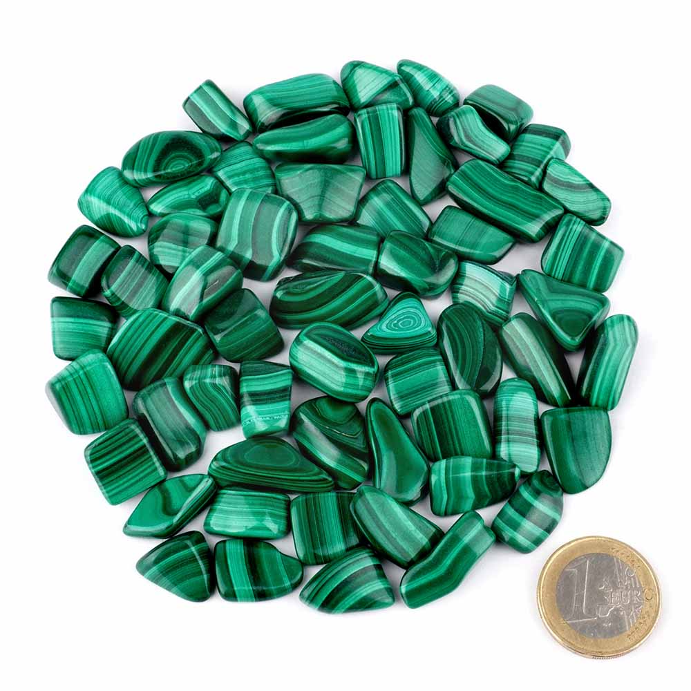 Malachit Trommelsteine Ø ca. 15 – 25 mm mit wunderschöner Maserung