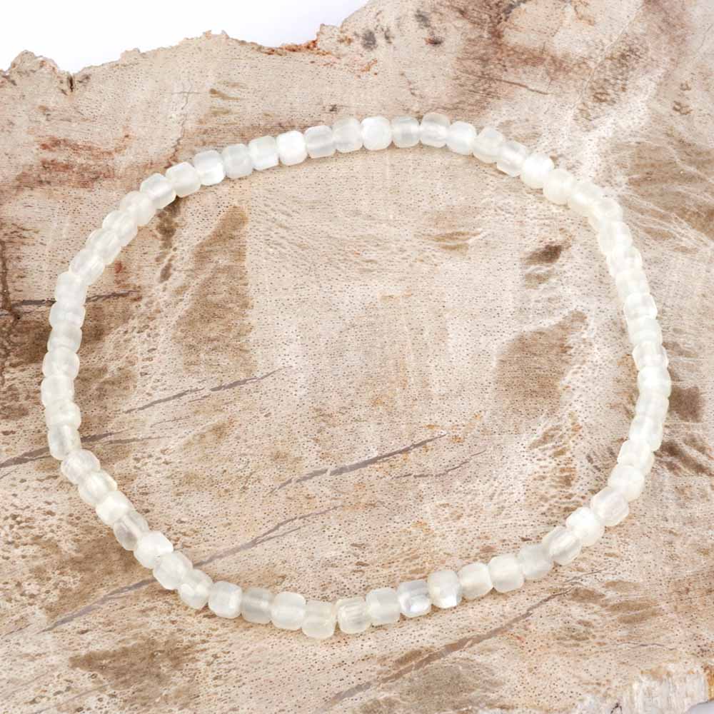 Mondstein weiß facettiertes Ø 3,6 mm Perlen Armband flexibel und dehnbar