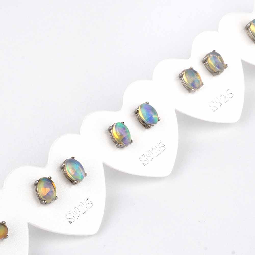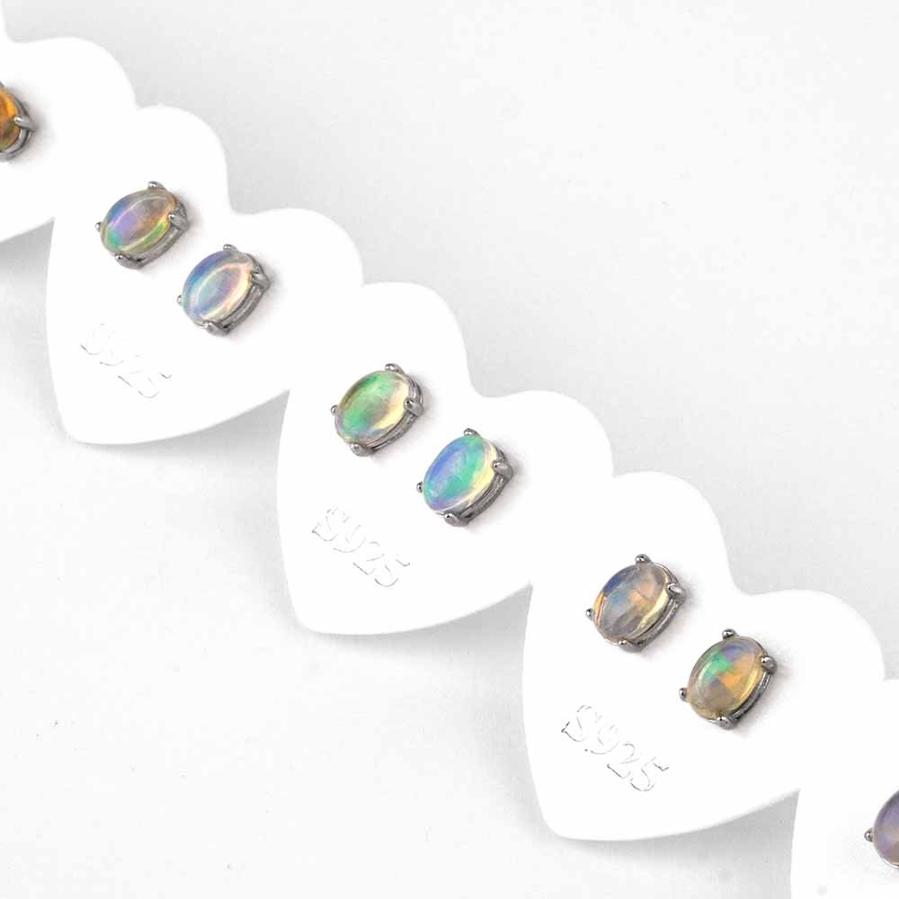 Opal Äthiopien Ø 6,5 mm ovale Edelstein Ohrstecker Paar & 925 Sterling-Silber