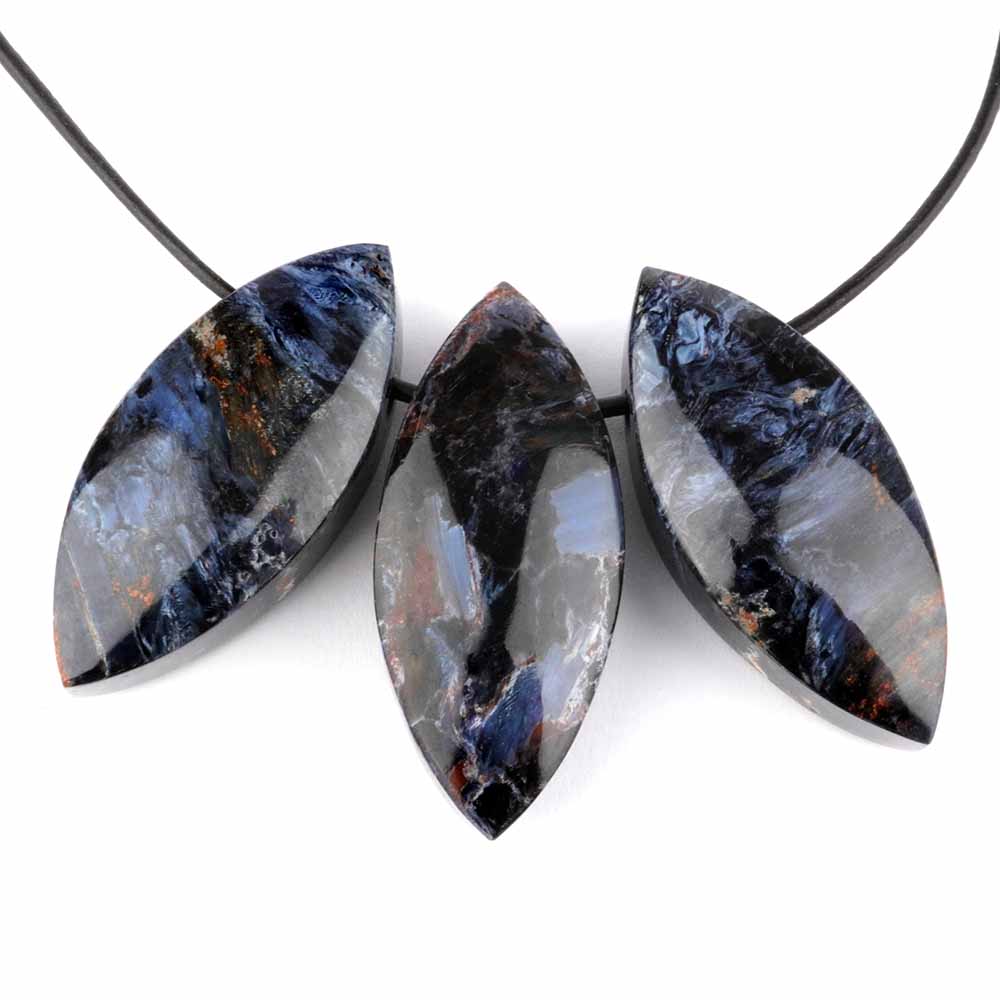 Bestes Pietersit wurde hier zu erstklassigen und wunderschönen Navette-Anhängern verarbeitet.