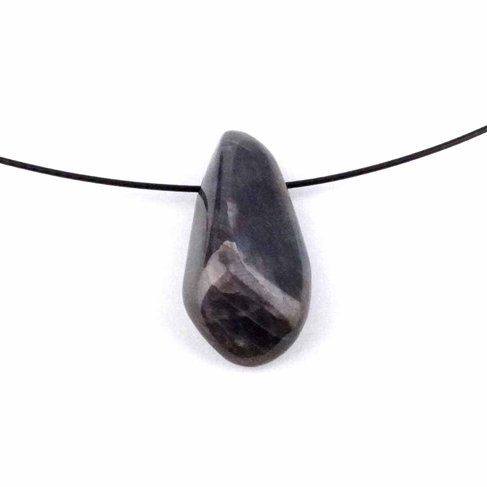 Saphir Naturform Anhänger seitlich gebohrt mit schwarzem Satinband