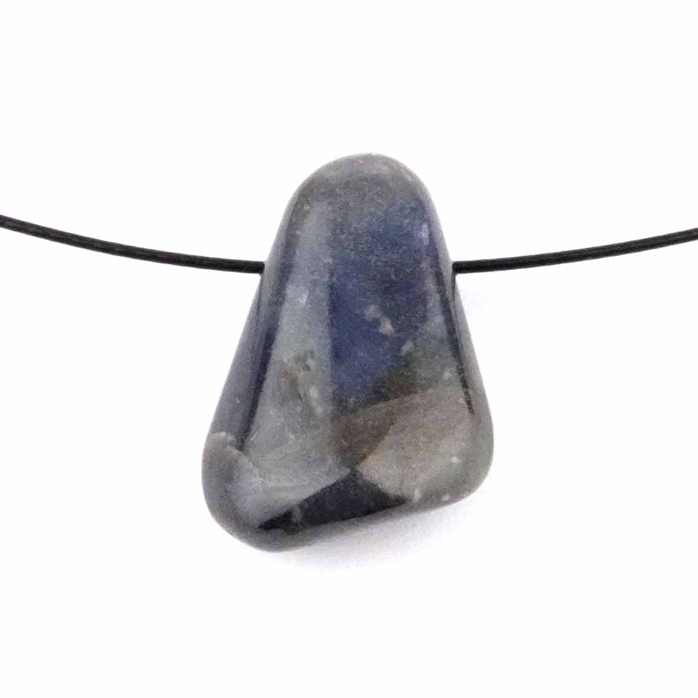 Saphir Naturform Anhänger seitlich gebohrt mit schwarzem Satinband