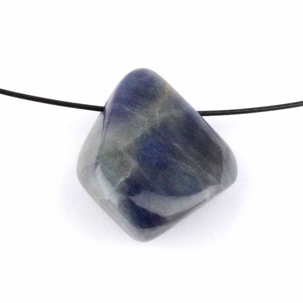 Saphir Naturform Anhänger seitlich gebohrt mit schwarzem Satinband