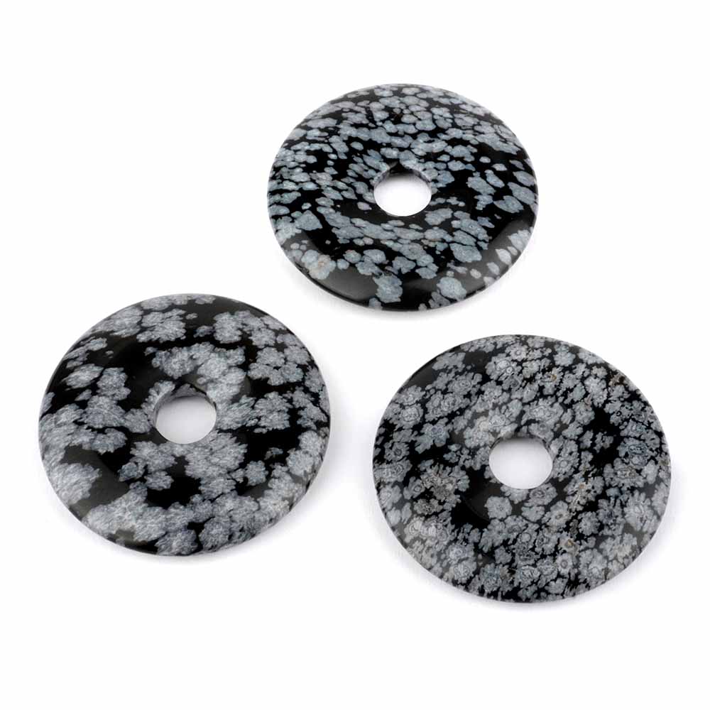 Bester Schneeflockenobsidian wurde hier zu erstklassigen Donut-Anhängern verarbeitet.