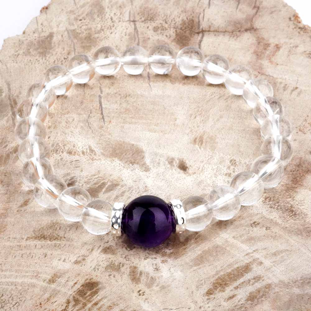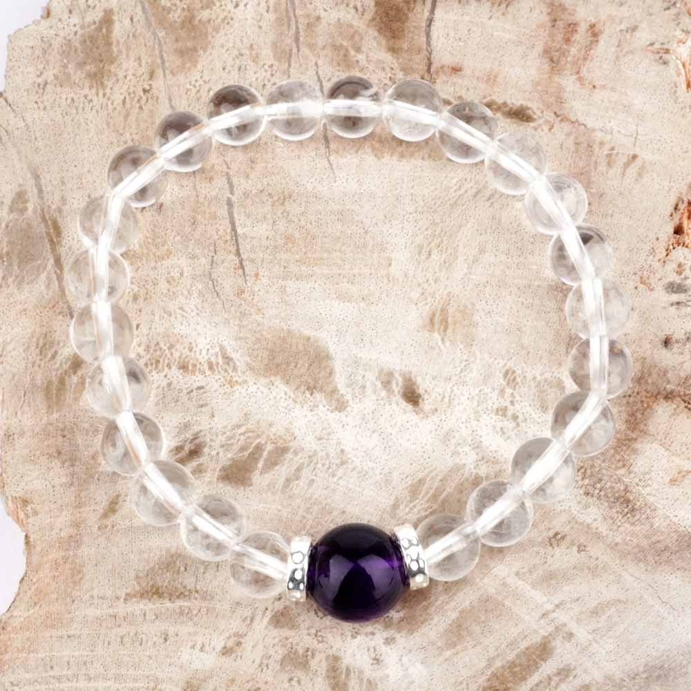 Selected Edition – Ø 11,5 mm Amethyst Perle & Ø 8 mm Bergkristall & 925 Sterling-Silber Armband