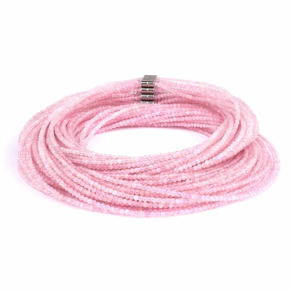 Selected Edition – Verwandelbares Rosenquarz Perlen Edelstein Armband & Kette facettiert mit Magnetverschluss