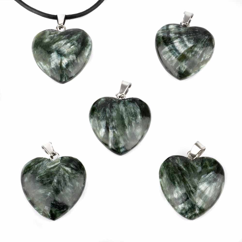 Bester Serafinit wurde hier zu erstklassigen und wunderschönen Herz-Anhängern verarbeitet.