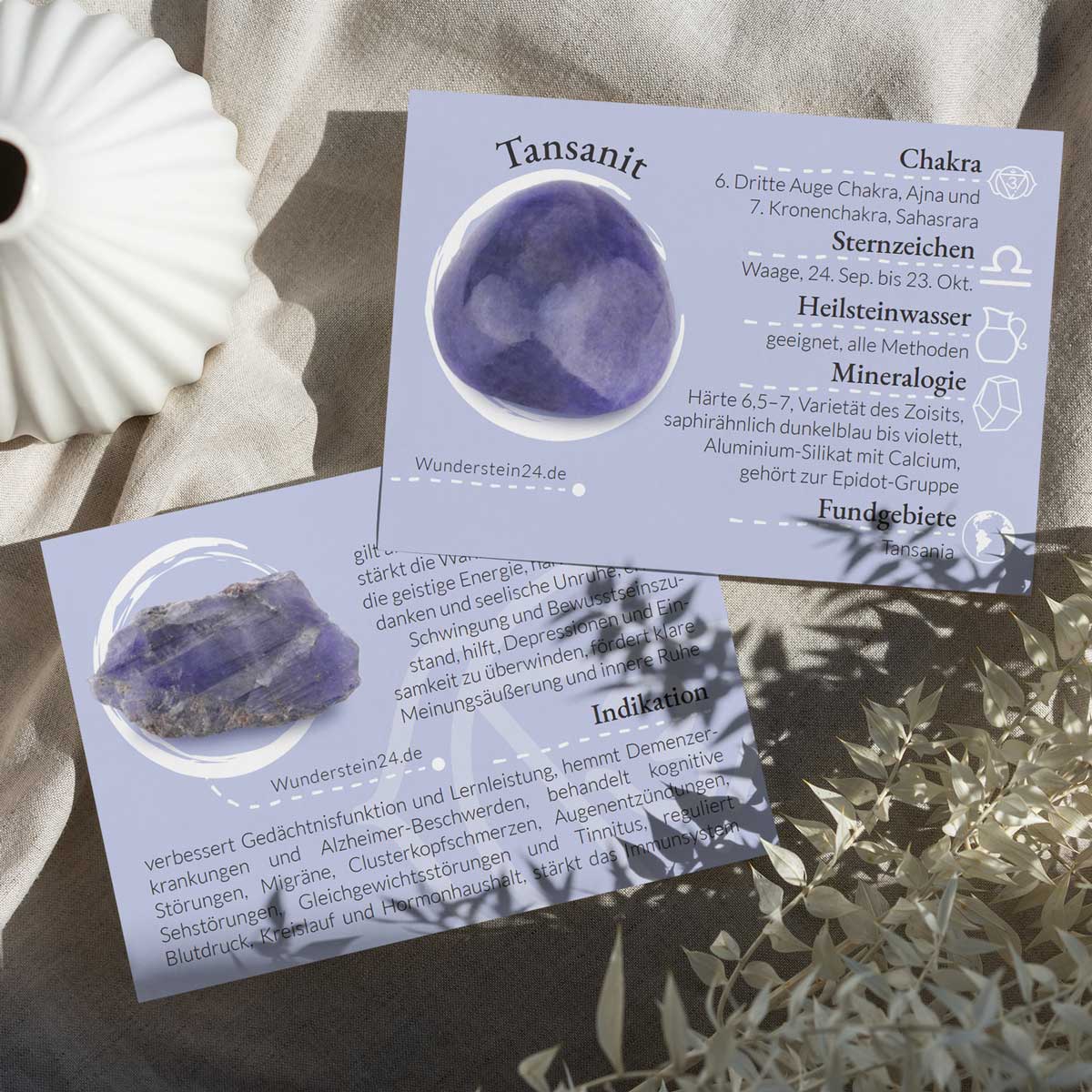 Jedes einzelne Kärtchen präsentiert einzigartige Informationen über ein spezifisches Mineral. Von seinen geologischen und spirituellen Eigenschaften findest alles auf einem Blick.