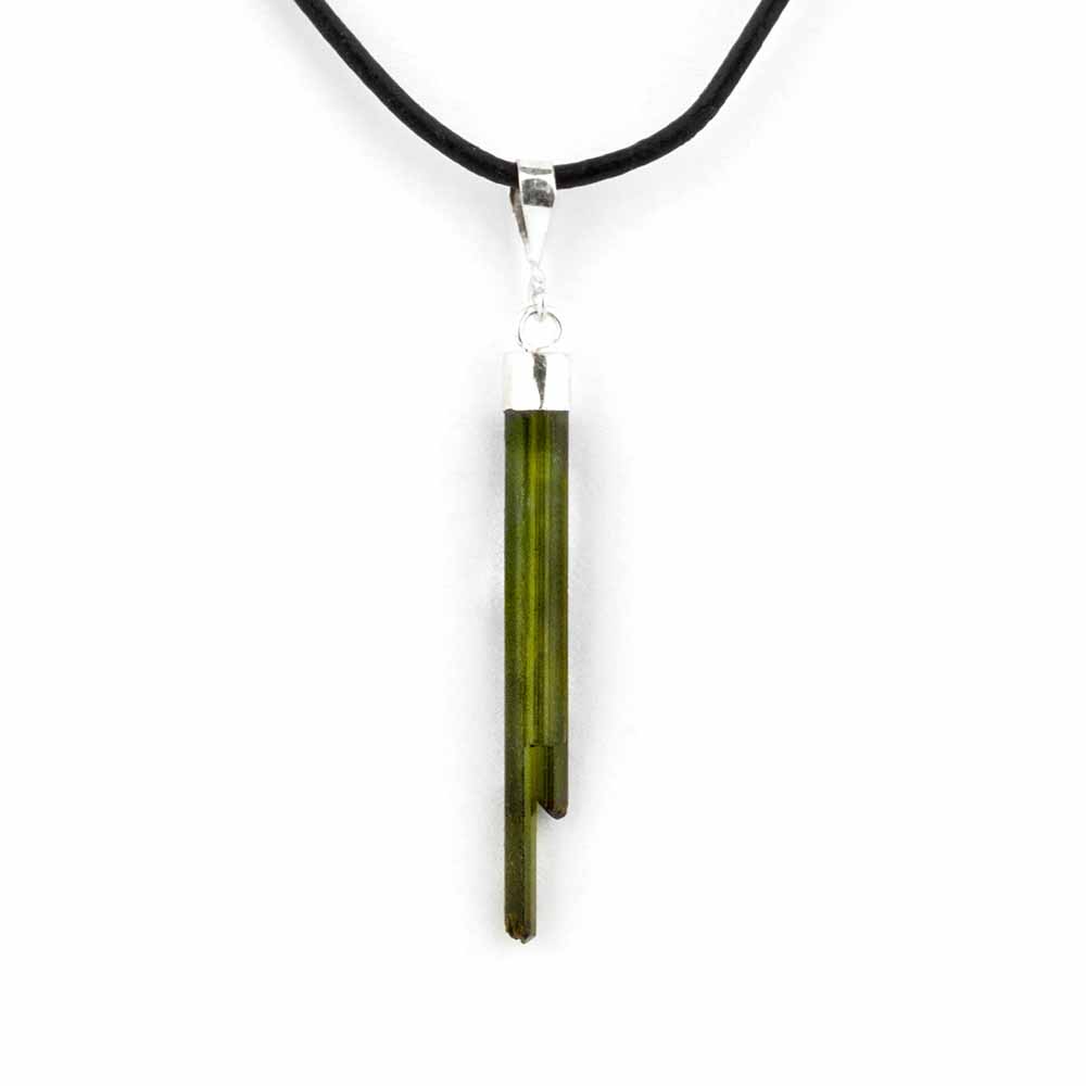 Turmalin grün Kristall Anhänger Natur Länge 50 mm mit 925 Sterling-Silber Öse und Satinband