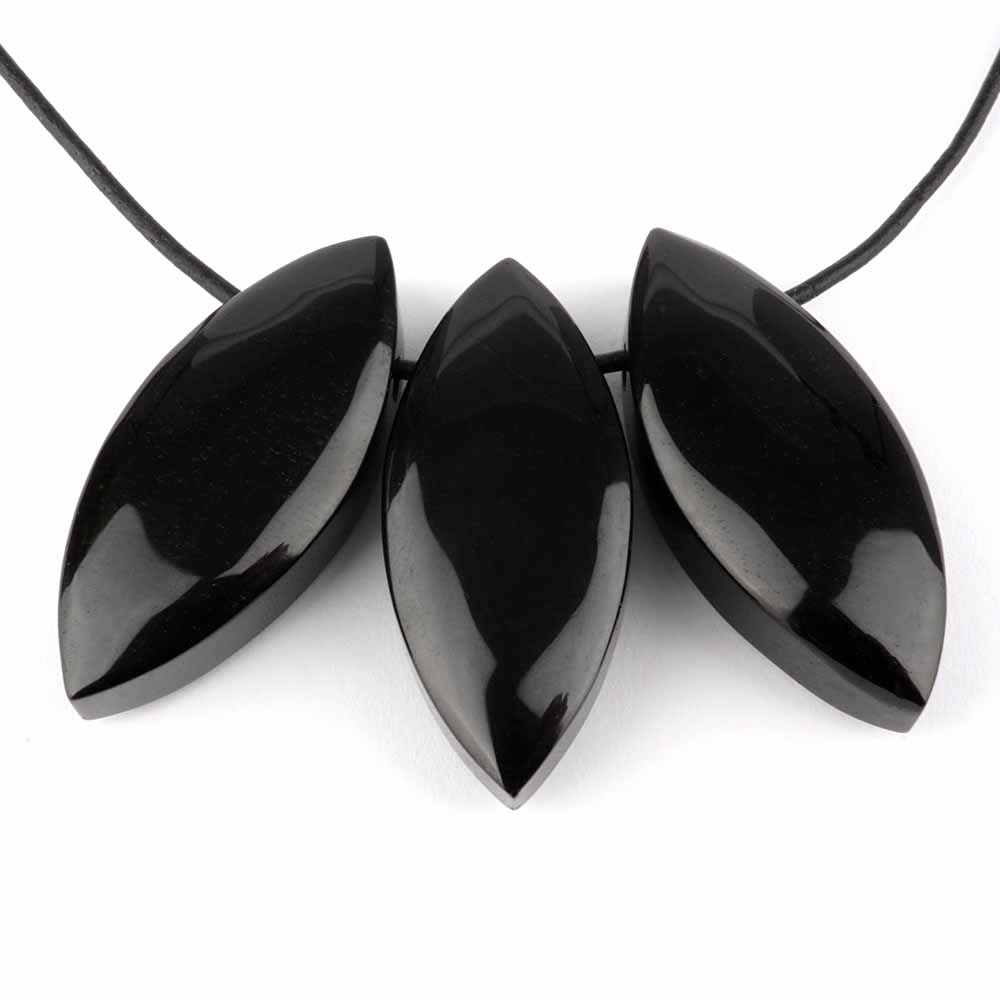 Bester, schwarzer Turmalin wurde hier zu erstklassigen und traumhaft schönen Navette-Anhängern verarbeitet.