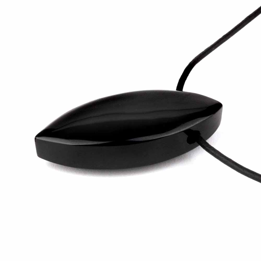 Turmalin schwarz Navette Anhänger seitlich gebohrt mit schwarzem Satinband