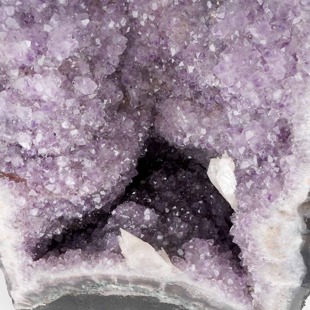 Sehr große und wunderschöne Amethyststufe mit Calcitkristallen in sehr guter Qualität und Farbe.